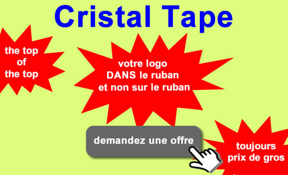 Vous voulez vous démarquer? Commandez nos rubans adhésifs 'Cristal'. Nous imprimons DANS le ruban et non sur le ruban. Votre logo est cristallisé dans la masse du ruban adhésif. Un effet unique. Très haut de gamme et votre logo ne sera pas effacé durant le transport, quand les colis se frottent les uns contre les autres. Une technique de pointe que pas tout le monde sait mettre en œuvre.