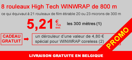 (1) Jack Pauwels vend le film High Tech WINWRAP Coreless uniquement par rouleaux jumbo de 800 m.