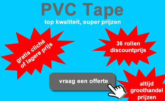 Een sterke en stevige PVC tape van 35 micron dik. (dus geen standaard 32 micron dik)Op een tape van 35 micron zit meer rubbersolventlijm dan op een van 32 micron dik.